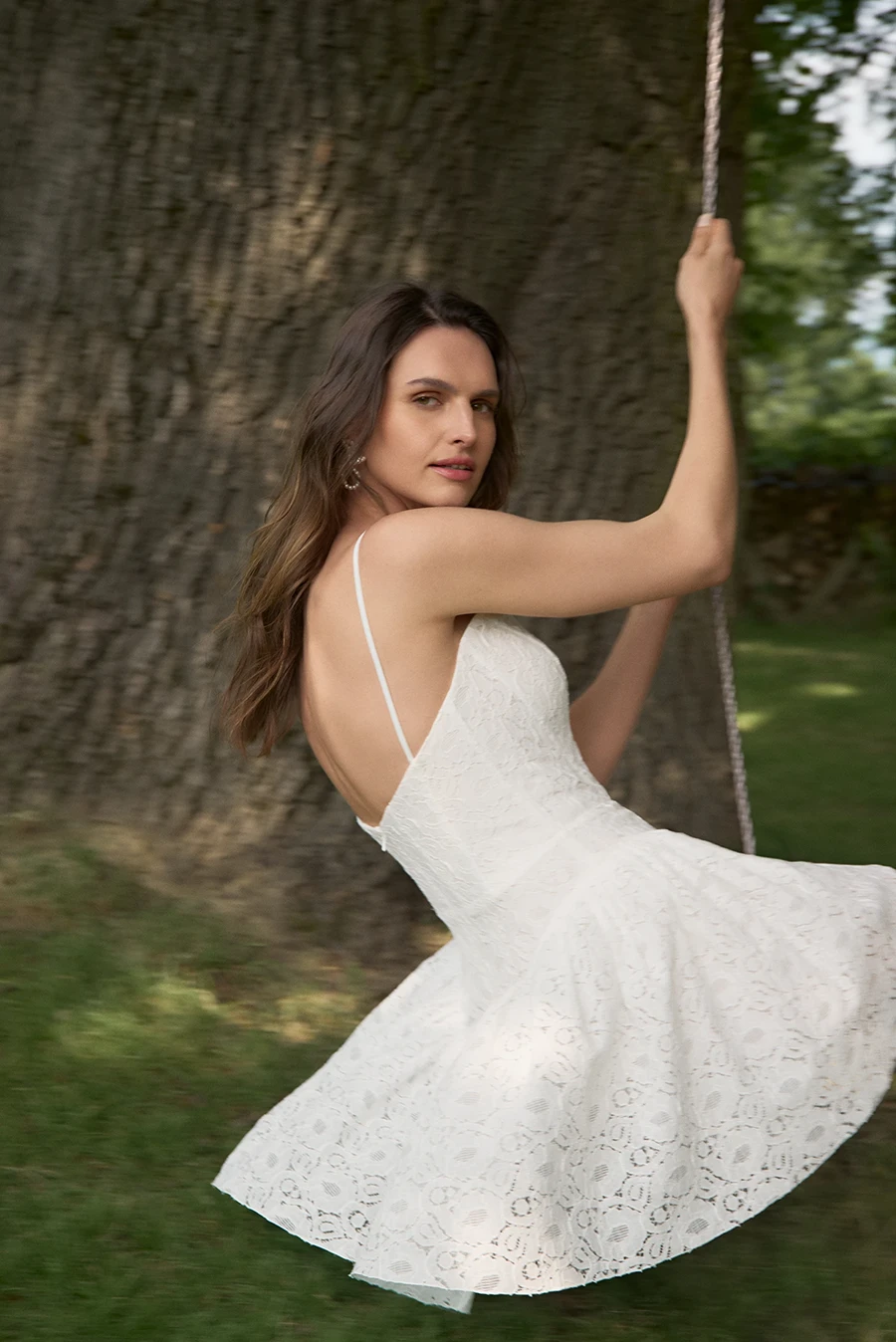 Sukienka z delikatnym gorsetem i krótką, rozkloszowaną spódnicą. Jej subtelny urok tkwi w prostocie – bawełniana koronka i lekki krój sprawiają, że jest niezwykle wygodna, a zarazem pełna wdzięku i kokieterii.